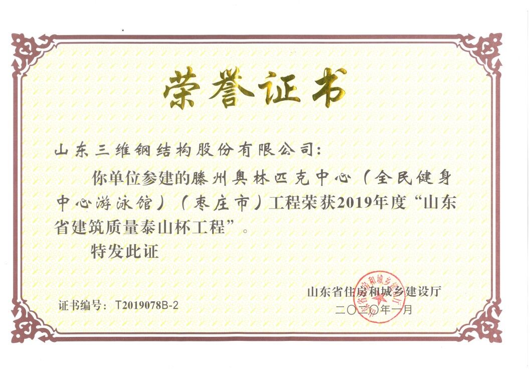 品質鑄就典范,創新激發活力,是復雜市場環境下品牌屹立不倒的至高法則。榮獲“泰山杯”獎,是對過往品質的認可。未來,三維鋼構必將秉承匠心、嚴抓標準,以自身強勁的品質與實力,助力城市更好發展。