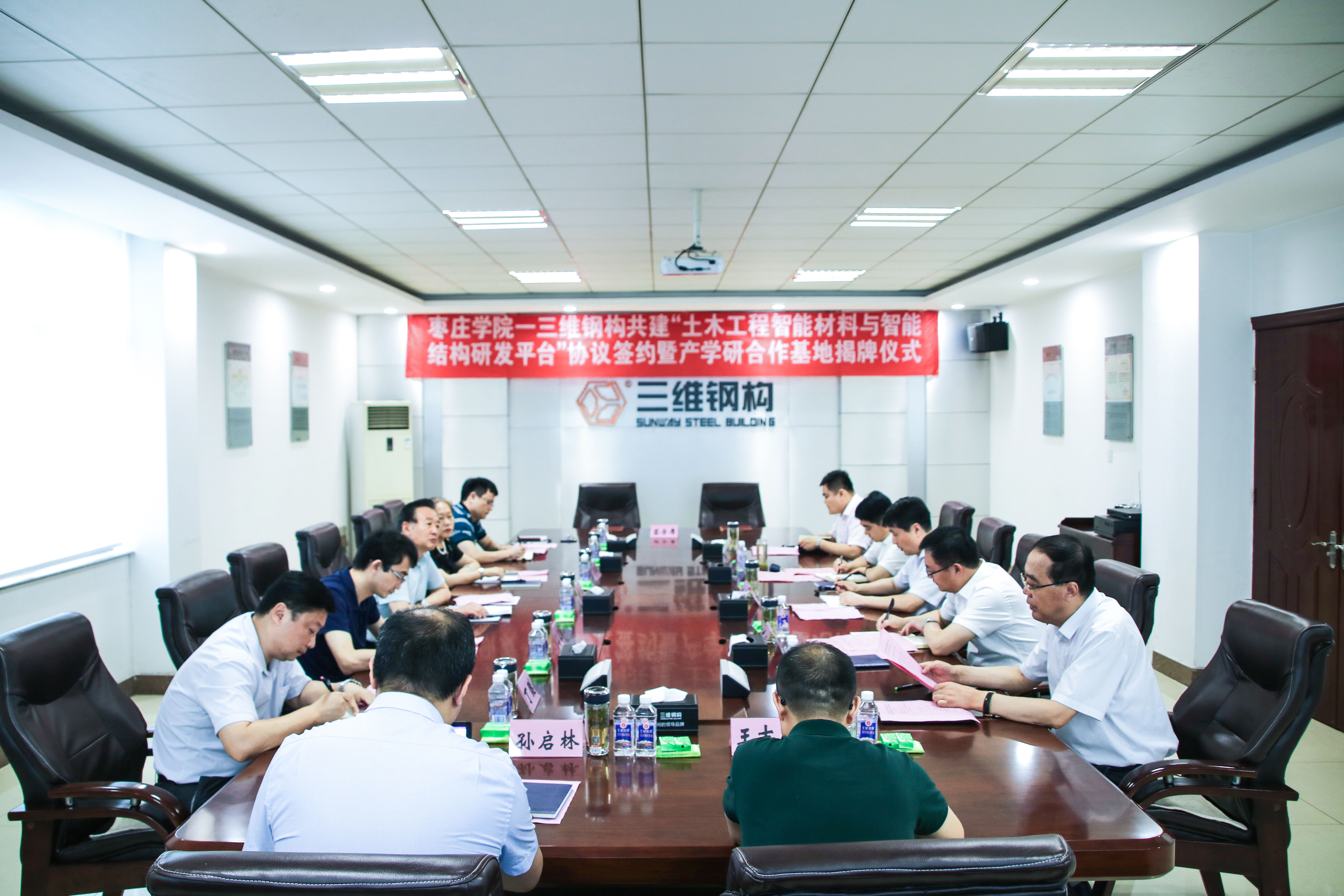 盛夏之際,果實累累。7月17日上午三維鋼構與棗莊學院合作共建“土木工程智能材料與智能結構研發平臺”合作協議簽約暨產學研合作基地揭牌儀式隆重舉行。