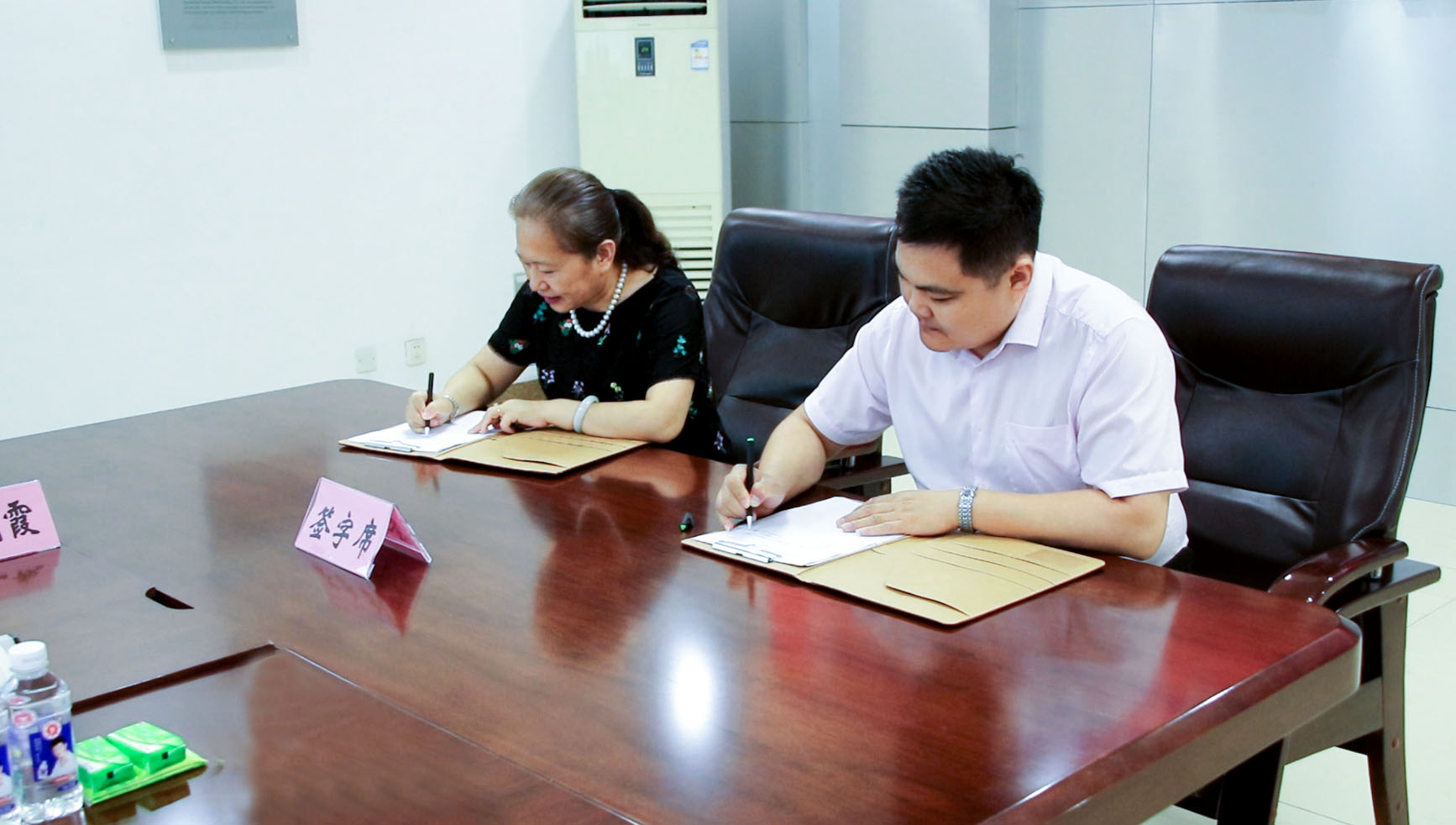 棗莊學院黨委委員副校長李麗清教授與三維鋼構總經理張厚鵬先生作為雙方代表在校企合作協議上簽字。