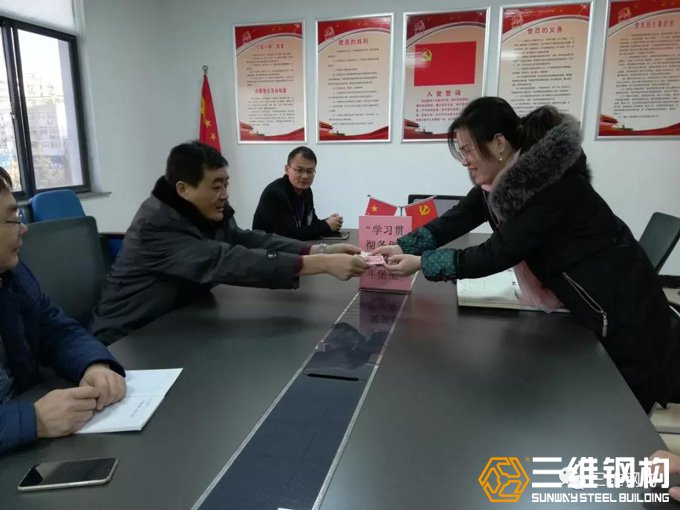 為進一步推動深入學習貫徹《中國共產黨支部工作條例(試行)》(以下簡稱《條例》),使黨員深入領會《條例》精神,全面掌握《條例》內容。12月28日上午,三維鋼構黨支部開展“學習貫徹條例、筑強戰斗堡壘”主題黨日活動,會議由黨支部書記楊維洪主持。