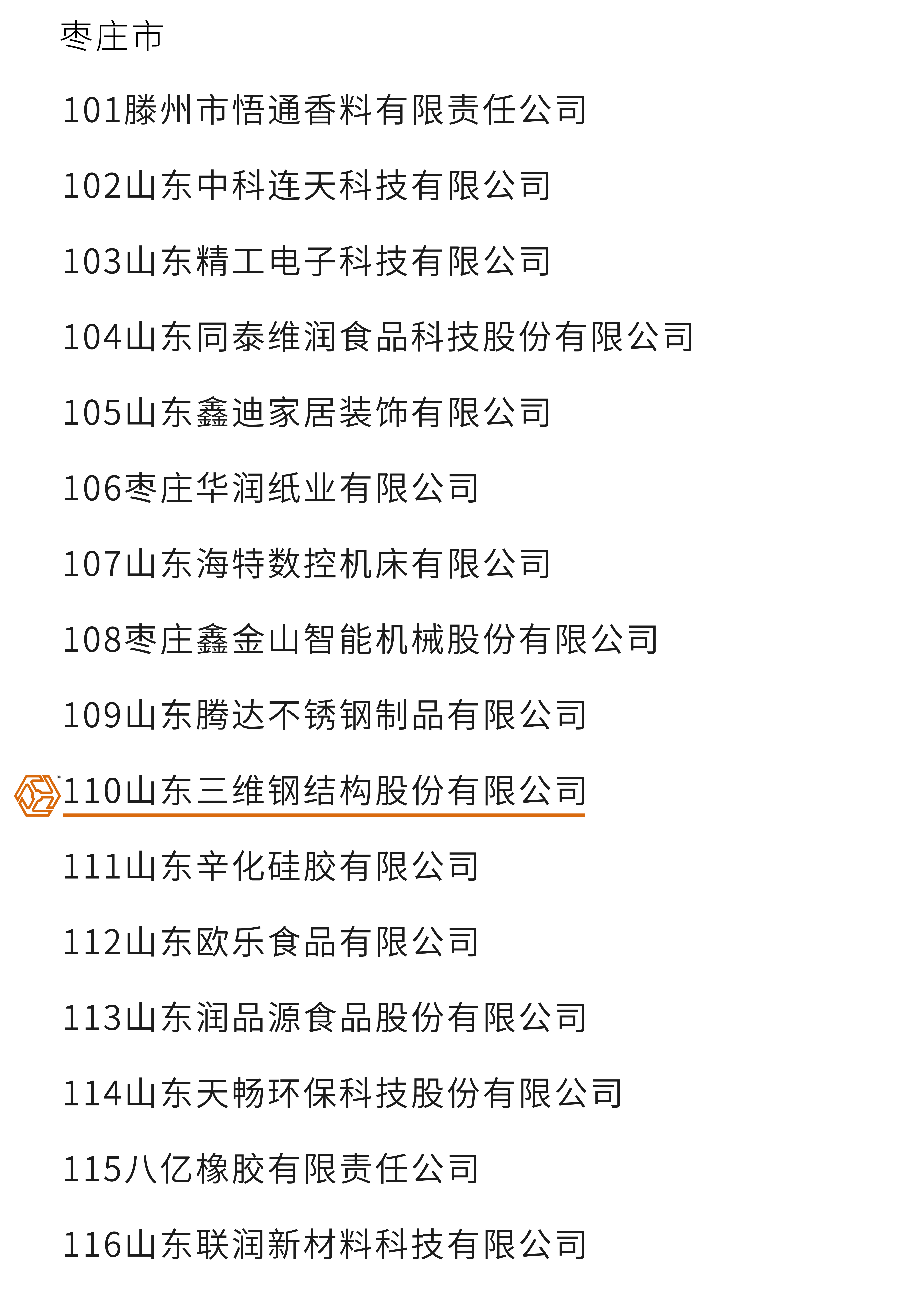 為深入實施質量強省及品牌戰略,打造培育一批質量高、誠信度高、美譽度高的企業品牌,加快推進我省品牌高端化進程,省市場監管局決定組織開展2021年山東省制造業、服務業高端品牌企業的培育和品牌價值評價工作,并公布了《2021年度山東省高端品牌新增培育企業名單》。其中,棗莊19家企業上榜,滕州9家。三維鋼構位列榜單。