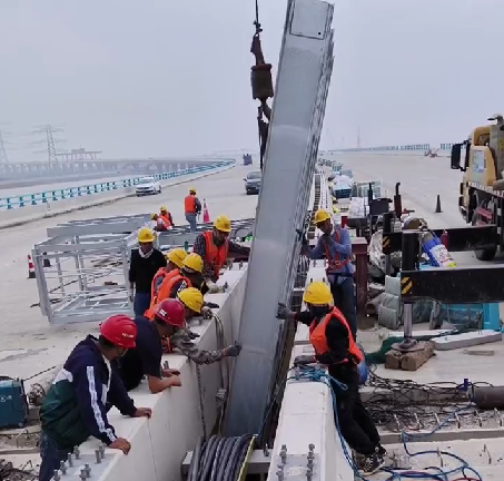 在安裝現場,工程部同事發揮“不怕苦、能吃苦”的工作精神,盯靠現場,克服狂風驟雨的惡劣天氣、道路交通影響等困難,在保證安全的前提下,僅用15天就順利完成任務,將不可能變成了可能。其精湛的安裝工藝幫客戶大大節約了項目的時間和成本,一解客戶的燃眉之急。